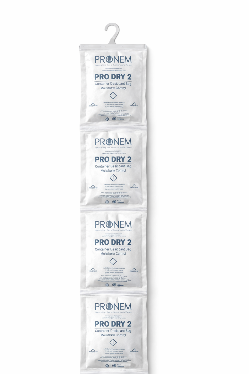 PRO DRY 2 Konteyner Nem Alıcı Paket, deniz aşırı sevkiyatlarda, yüksek rutubet ve gece – gündüz arası sıcaklık farklılıkları nedeni ile konteyner gibi kapalı alanlarda havada bulunan rutubet yoğunlaşarak ürünler üzerine yağmur şeklinde düşer. Bu durum gıda ürünlerinde küflenme, metal ürünlerde paslanma, elektronik ürünlerde kısa devre, koli gibi karton ambalajlarda hamurlaşma, çökme gibi çok sayıda geri dönüşü olmayan zararlara yol açmaktadır. Nemin neden olduğu bu zararları önlemek için havadaki su buharının yolculuk boyunca sürekli olarak tutulması gerekmektedir.